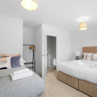 The top floor reveals two additional, spacious bedrooms and a contemporary family bathroom. For enhanced convenience, the residence also includes a downstairs cloakroom, ample integrated storage, and two designated parking spaces.